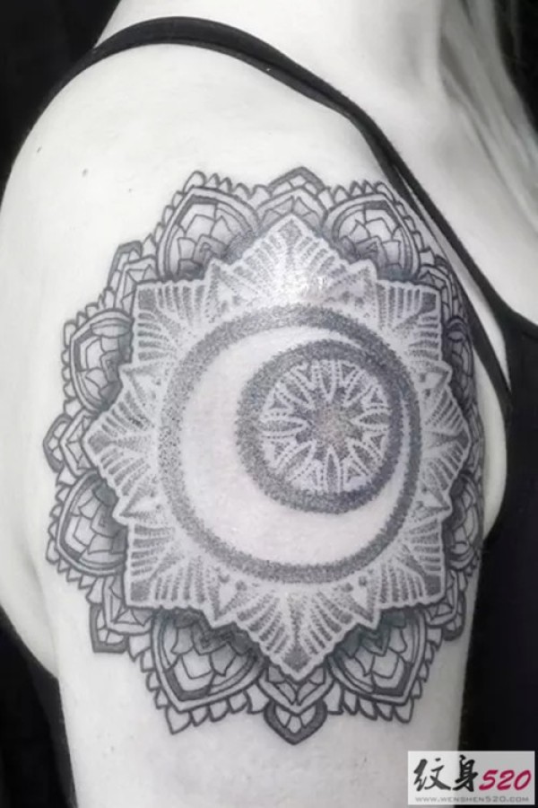 手臂黑灰曼陀罗图腾纹身