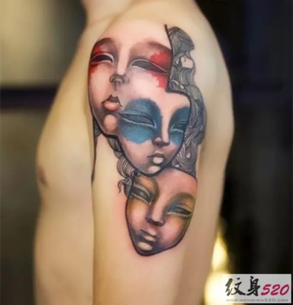 能面万媚纹身手稿_52张日式能剧面具纹身手稿图案素材欣赏
