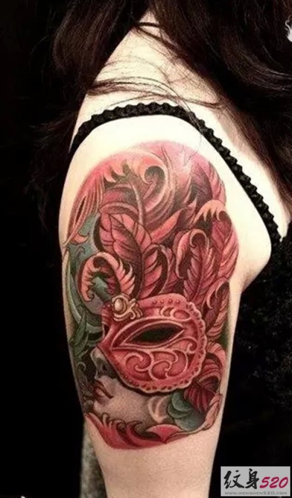 手臂上华丽而神秘的面具纹身