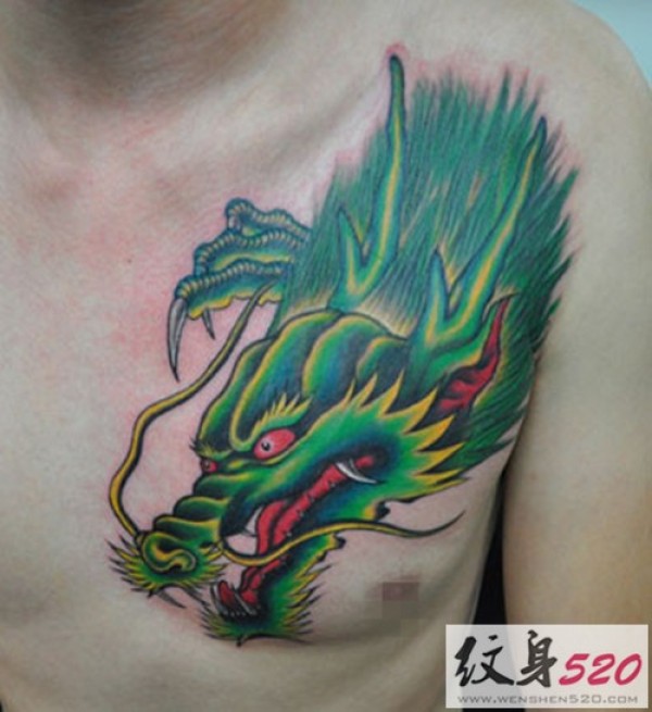 男士前胸霸气龙头纹身图案大全