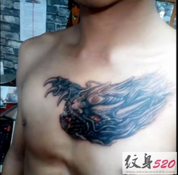 男士前胸霸气龙头纹身图案大全