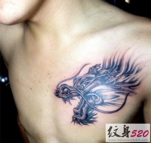 男士前胸霸气龙头纹身图案大全