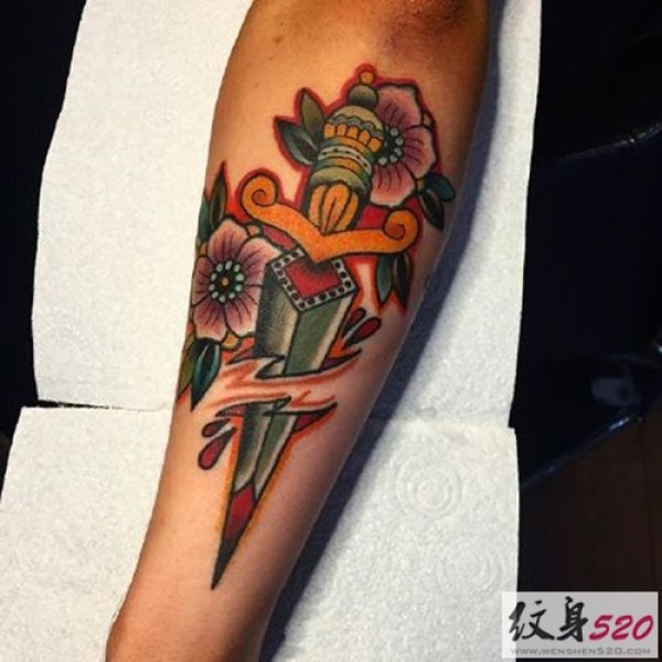手臂彩色old school 纹身图片