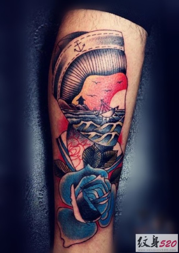 手臂彩色old school 纹身图片