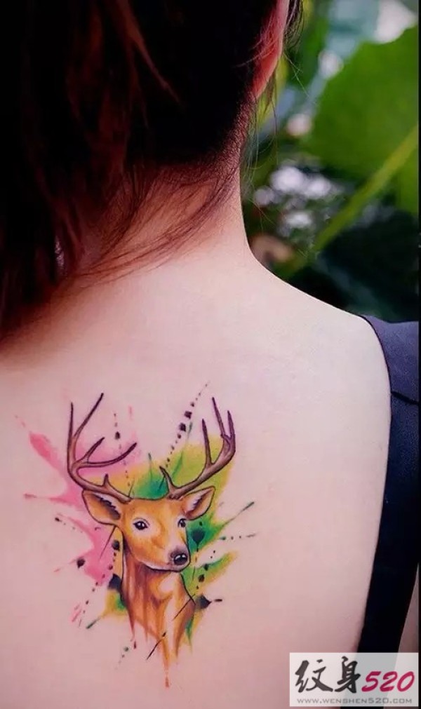 适合女生的背部彩色小纹身