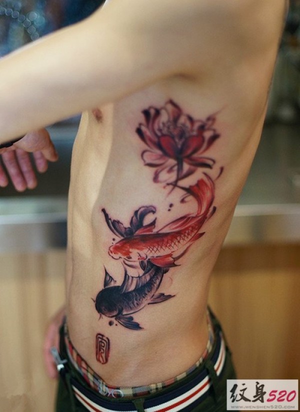腰部创意鱼文身作品