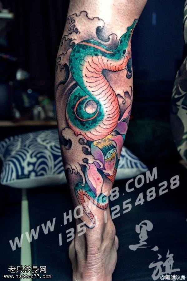 德国恐龙纹身眼镜蛇和卡通鳄鱼纹身水彩动物图案纹身