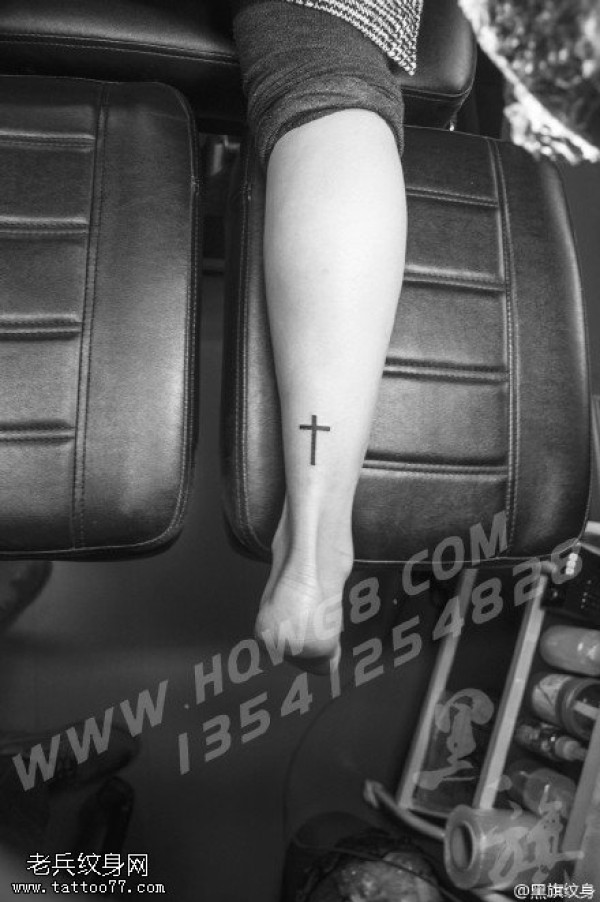 脚腕子上的十字架纹身图案