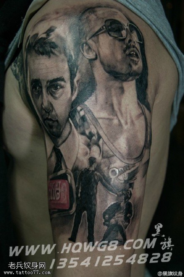 肩部的两个青年纹身图案