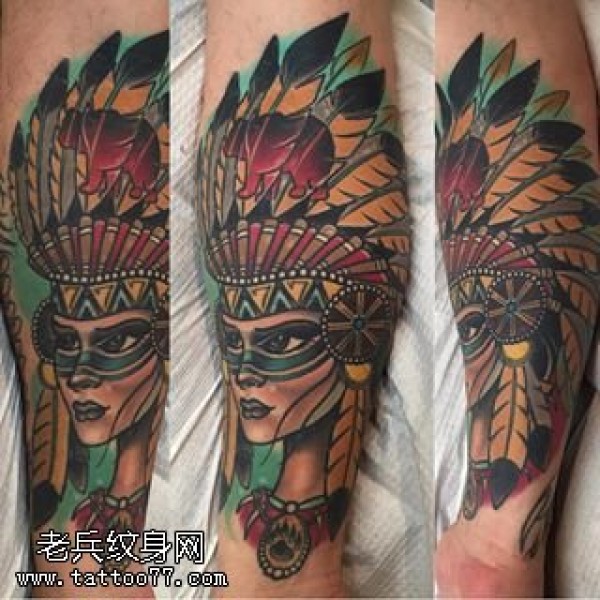 小腿的印第安女神纹身图案