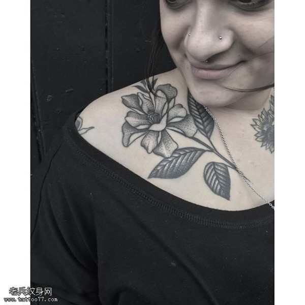后肩唯美花藤英文图案图片_植物纹身图案大全_纹身图吧