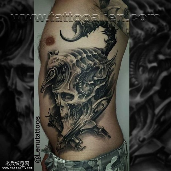 侧腰女骷髅刺青图案图片_骷髅纹身图案大全_纹身图吧