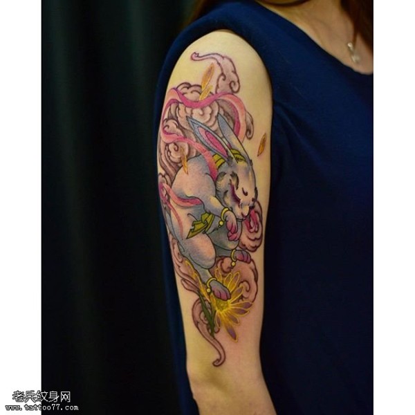 肩部的玉兔纹身图案