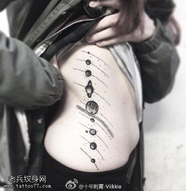 女生后腰纹身黑白灰风格抽象线条纹身图案