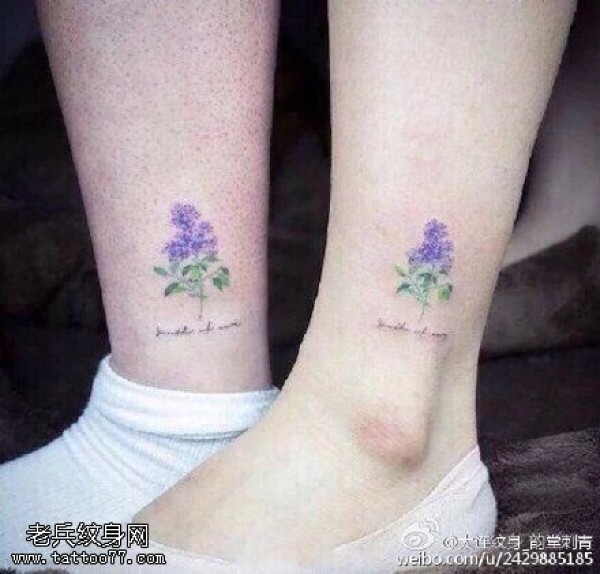 脚腕上薰衣草纹身图案