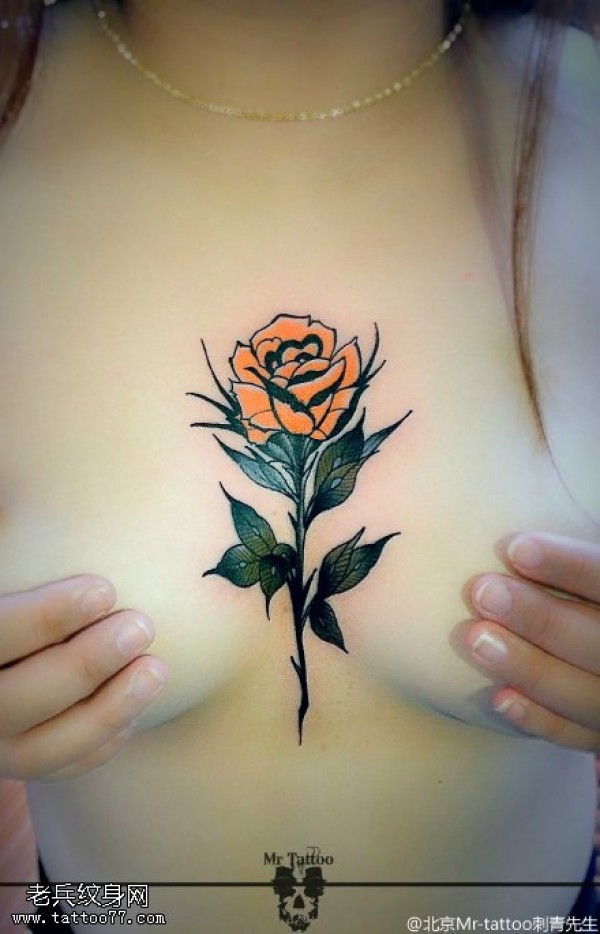 胸部一多黄玫瑰纹身图案