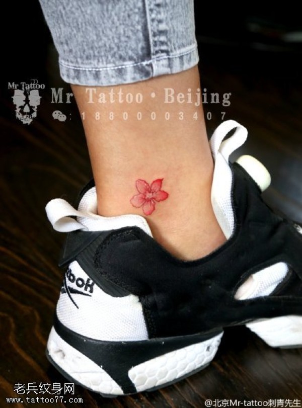 清新小桃花脚踝纹身_脚部纹身图案大全_纹身图吧