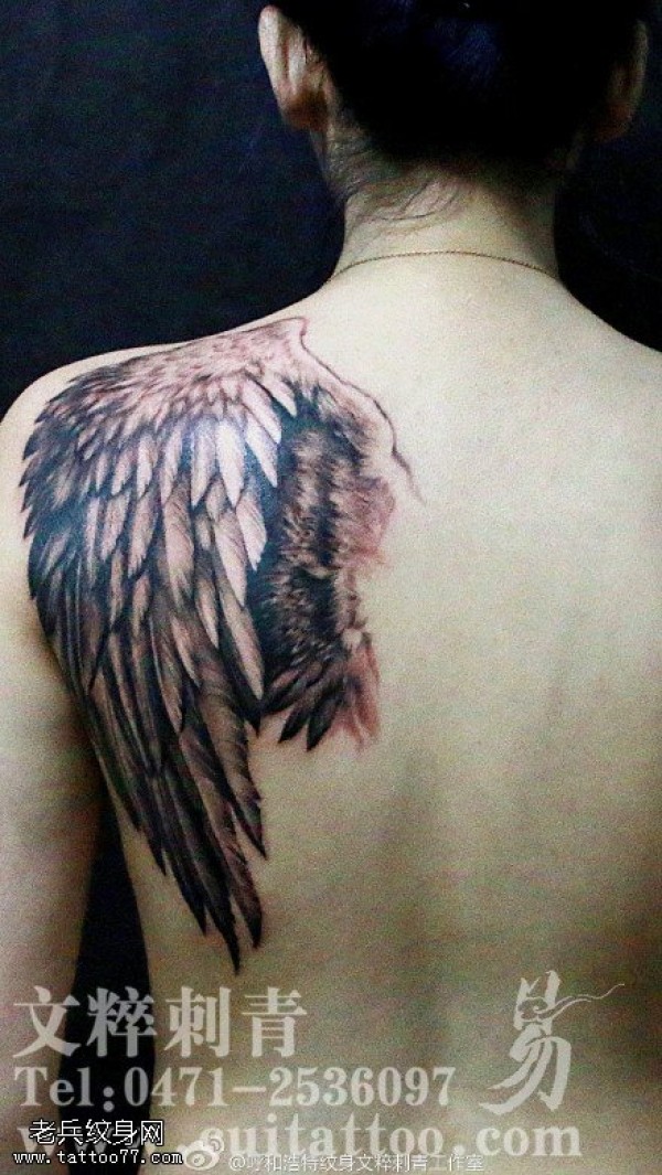 女生肩花纹身_15张女性双肩对称的肩花纹身图案作品图片