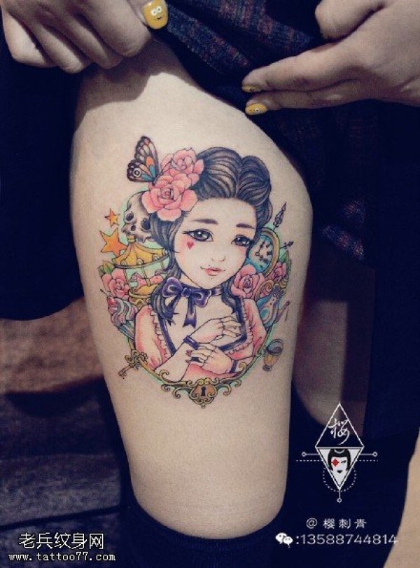 女孩腿部唯美刺青_腿部纹身图案大全_纹身图吧
