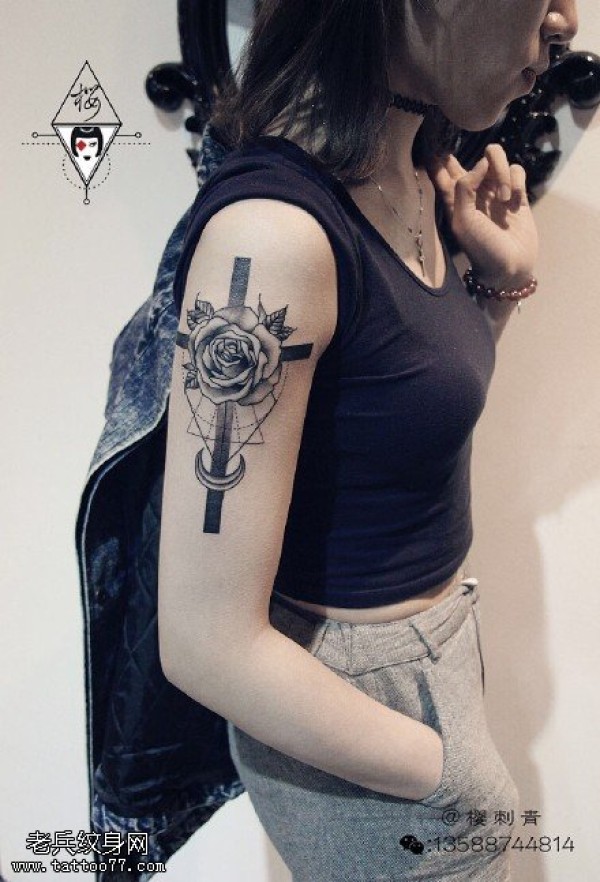 女生肩花纹身_15张女性双肩对称的肩花纹身图案作品图片