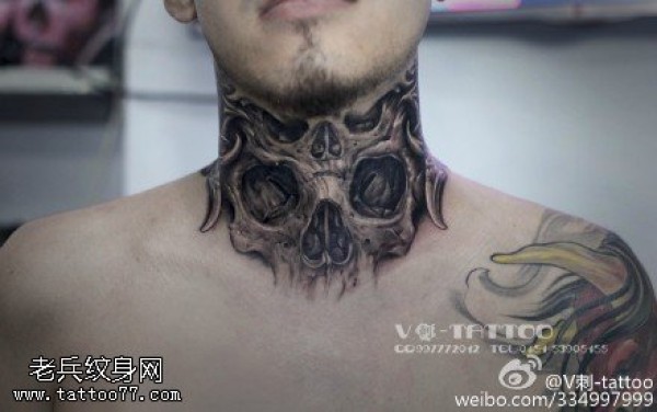 30款男性超帅气的黑灰色脖子纹身图案大全