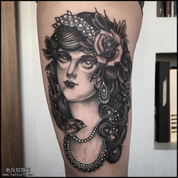 传统花腿纹身--18张传统风格的大花腿纹身图案作品