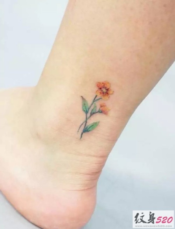 清新小桃花脚踝纹身_脚部纹身图案大全_纹身图吧