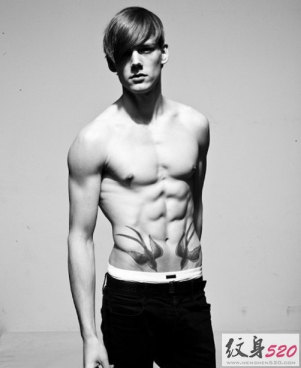 分享一款腰部时尚性感的蝶恋花纹身图案_腰部纹身图案大全_纹身图吧