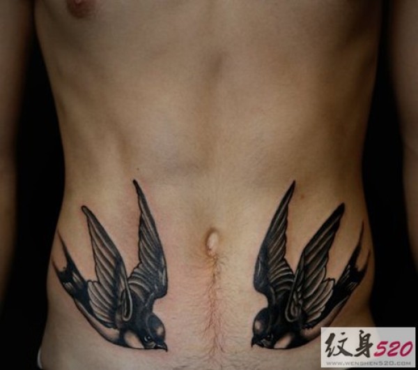 分享一款腰部时尚性感的蝶恋花纹身图案_腰部纹身图案大全_纹身图吧