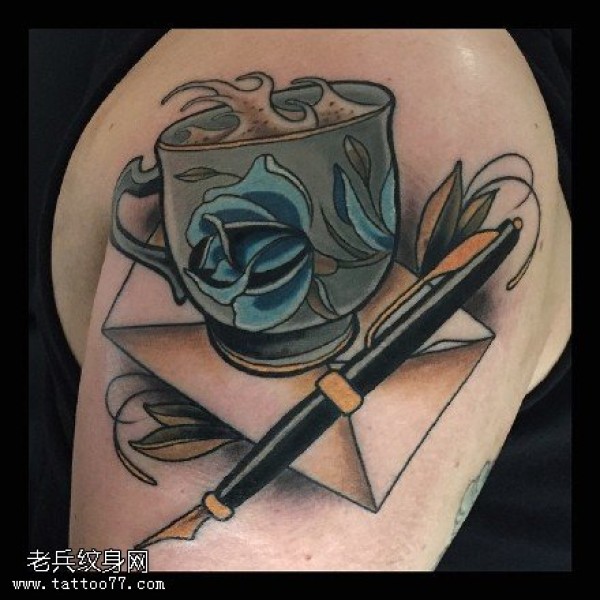 肩膀的杯子纹身图案