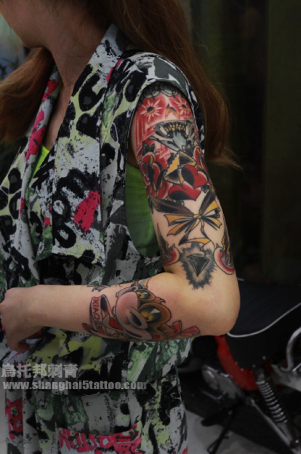 school花臂纹身--一组漂亮的school风格的花臂纹身图案作品