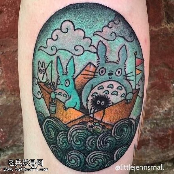 帆船上的龙猫纹身图案
