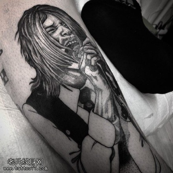小腿的肖像纹身图案