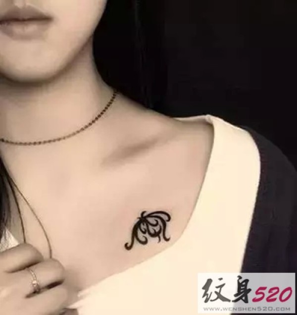 潮女的性感锁骨纹身