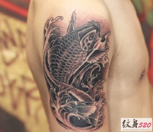 男士大臂鲤鱼纹身图片