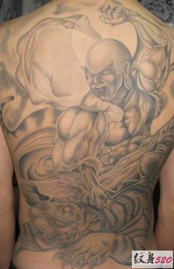 满背霸气伏虎罗汉纹身