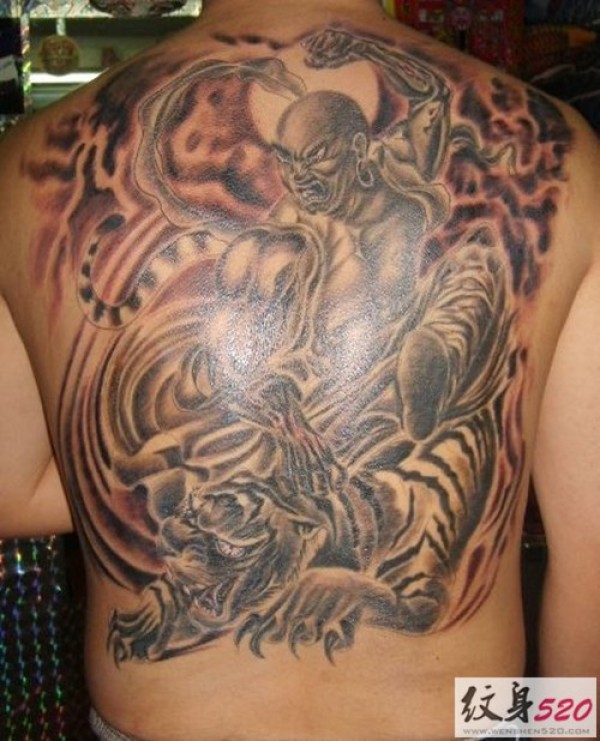 满背霸气伏虎罗汉纹身