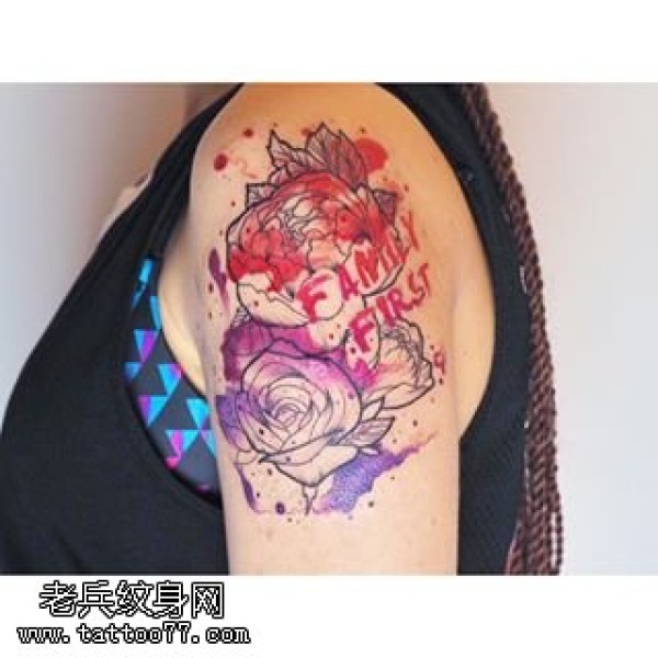女生肩花纹身_15张女性双肩对称的肩花纹身图案作品图片