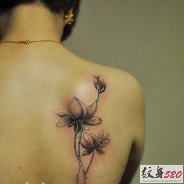 女生肩花纹身_15张女性双肩对称的肩花纹身图案作品图片