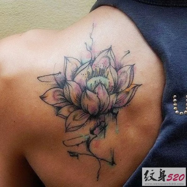 女生肩花纹身_15张女性双肩对称的肩花纹身图案作品图片