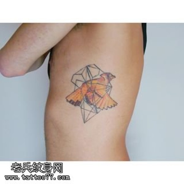 腹部线条点刺鸟纹身图案