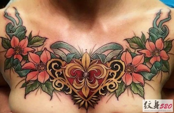女性大花胸纹身_43张霸气漂亮的女性大花胸纹身图案作品