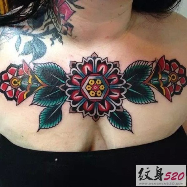 女性大花胸纹身_43张霸气漂亮的女性大花胸纹身图案作品