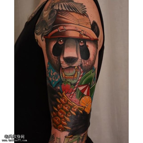 肩部可爱的熊猫纹身图案