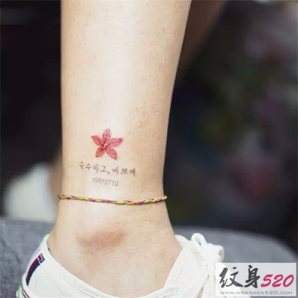 清新小桃花脚踝纹身_脚部纹身图案大全_纹身图吧