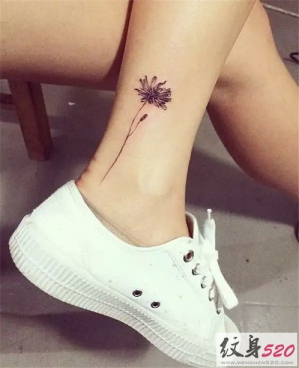 女生脚踝向日葵纹身_脚部纹身图案大全_纹身图吧