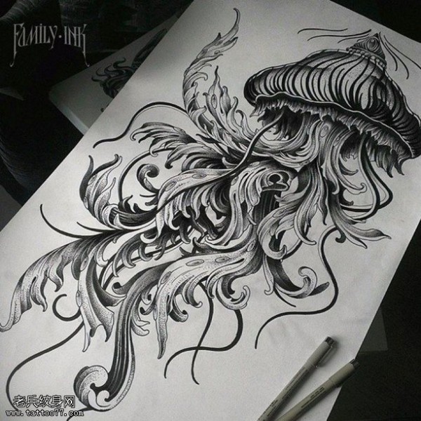 双鱼座纹身手稿_45张十二星座之双鱼手稿纹身图案