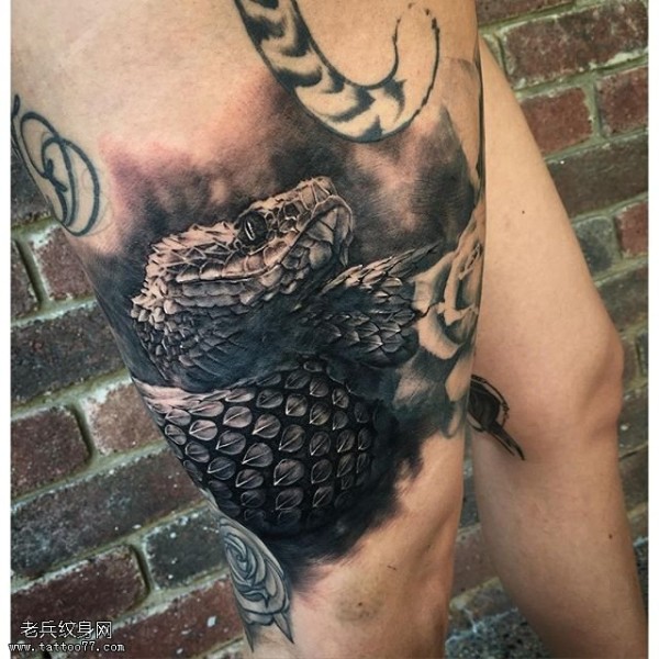 大腿部的鳄鱼纹身图案
