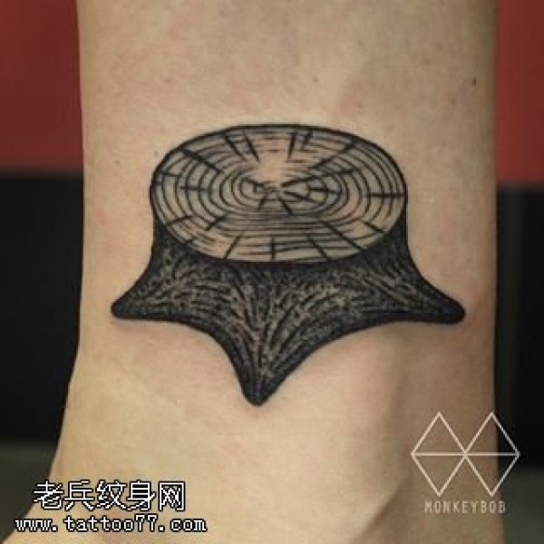 脚腕上树桩纹身图案
