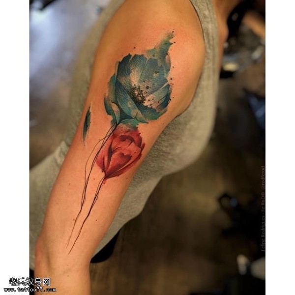 肩部水墨画纹身图案